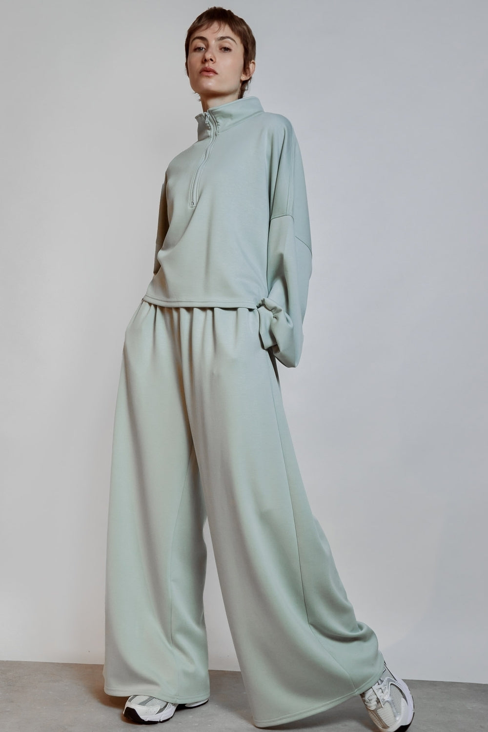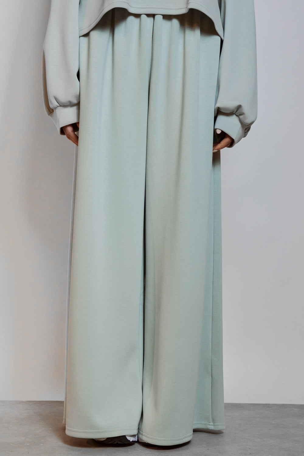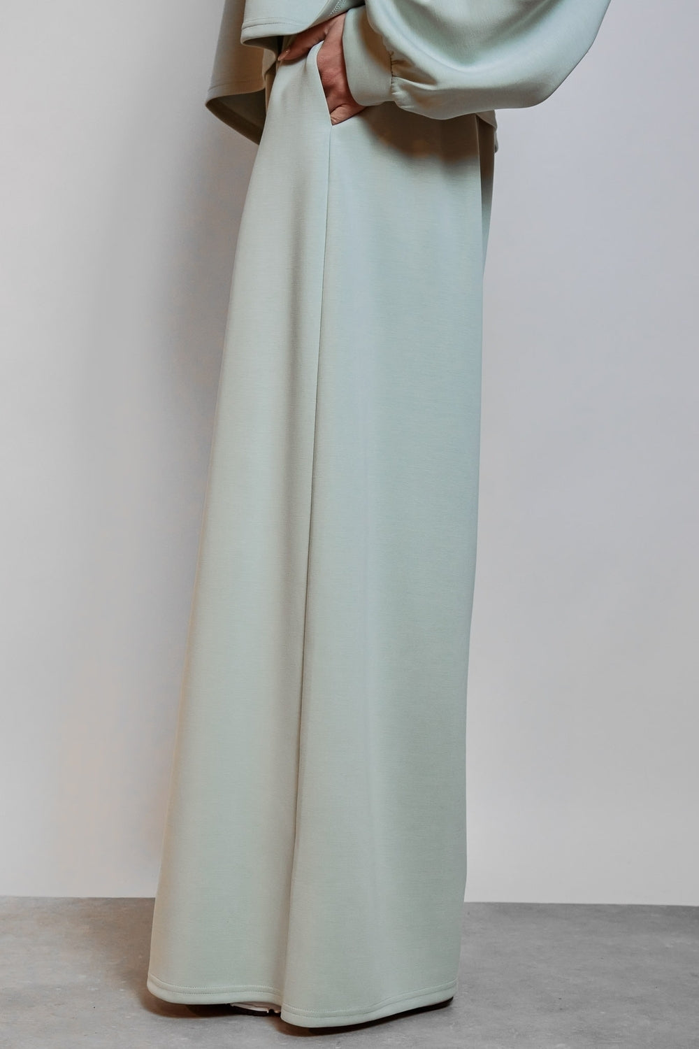 Wide-leg trousers with a very flared leg. Elasticated waistband for easy on and off and optimal comfort. Lightweight fabric with a soft drape. Pocket-free design for a clean silhouette.