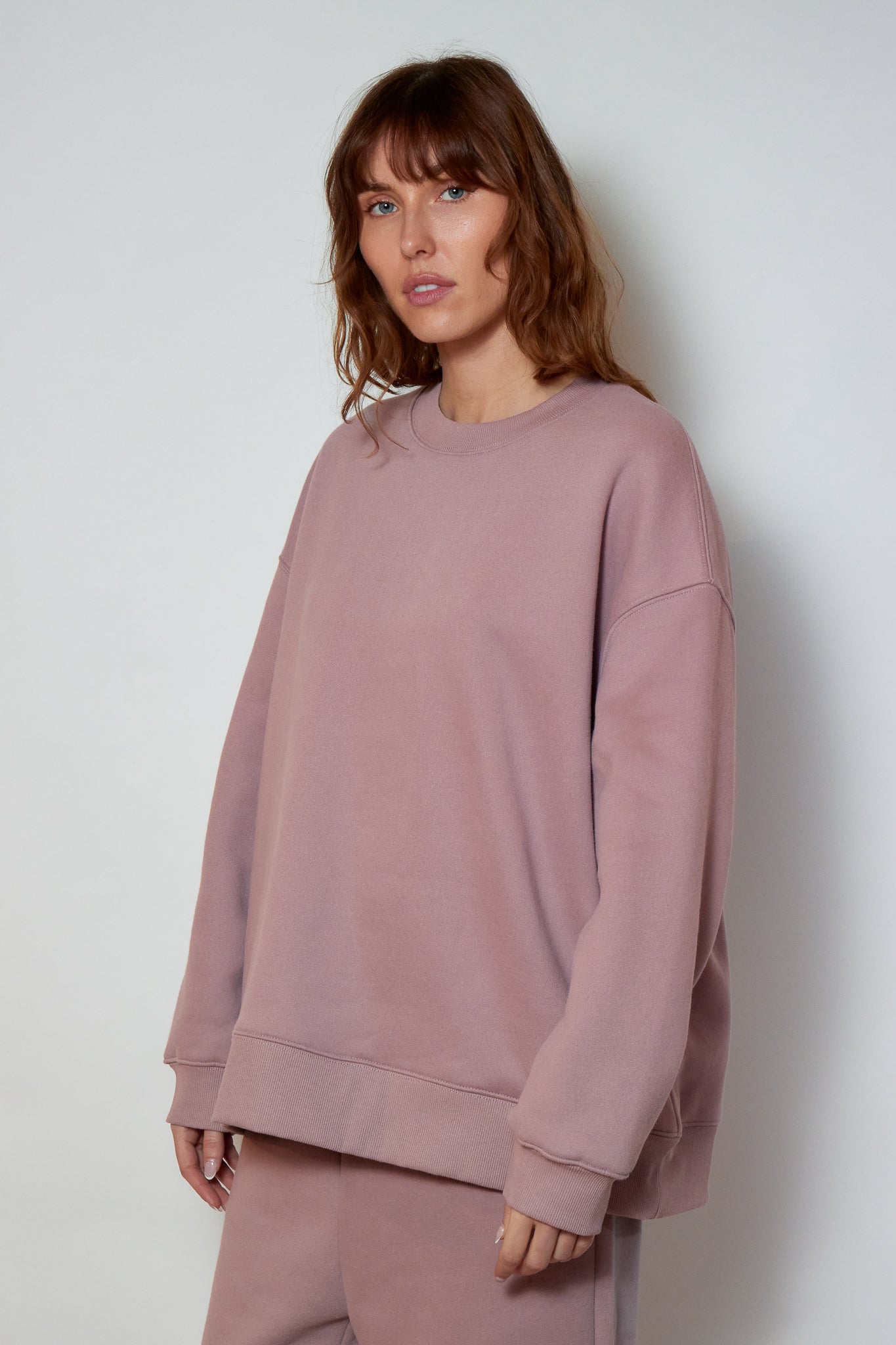 Sweat à encolure ronde avec coupe ample et volume souple. Épaules tombantes et manches longues structurées par des coutures apparentes. Base et poignets resserrés définissant la silhouette sans contrainte.