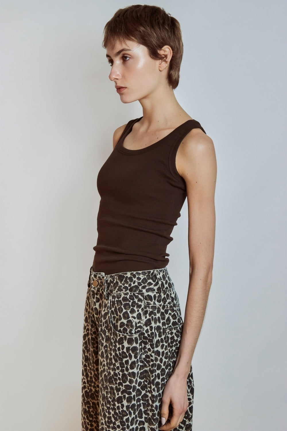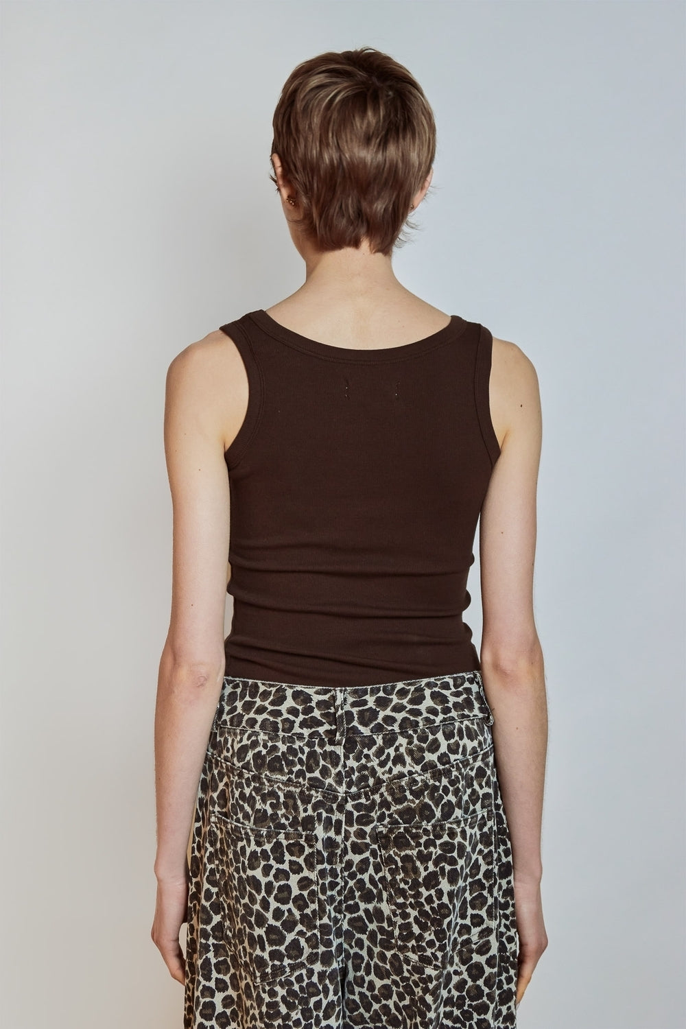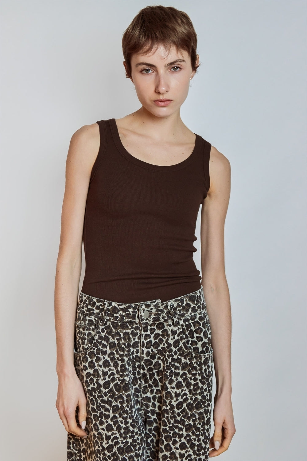 Débardeur à encolure arrondie avec emmanchures dégagées. Coupe près du corps mettant en valeur une ligne simple et continue. Maille côtelée apportant une structure régulière et un maintien naturel. Finition nette aux bords pour une silhouette épurée et essentielle.