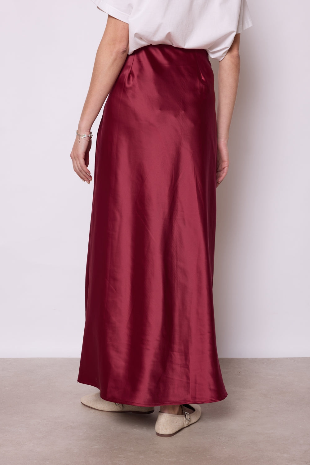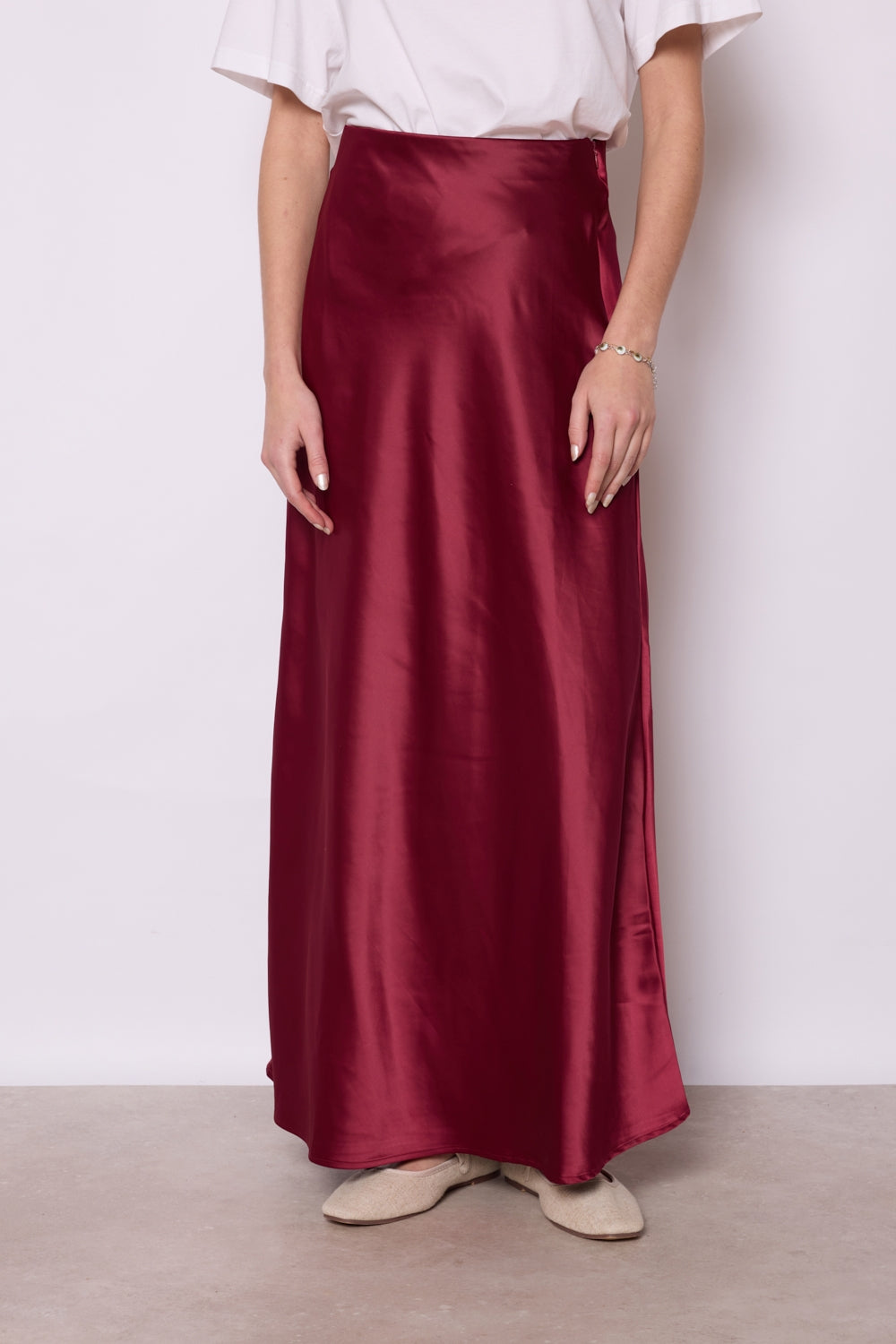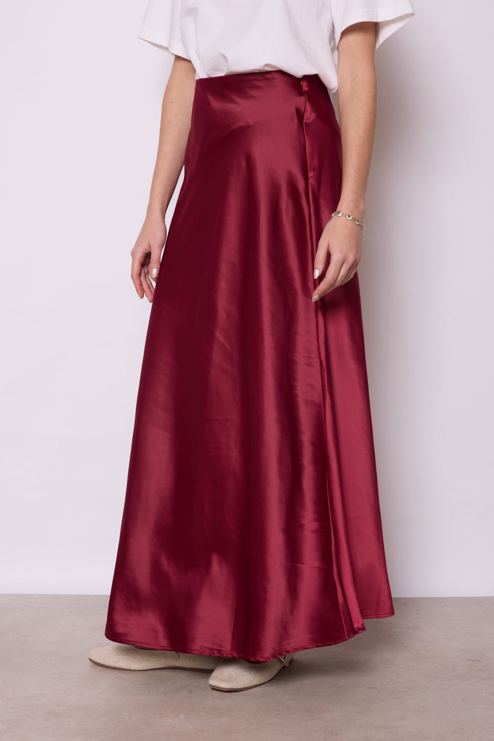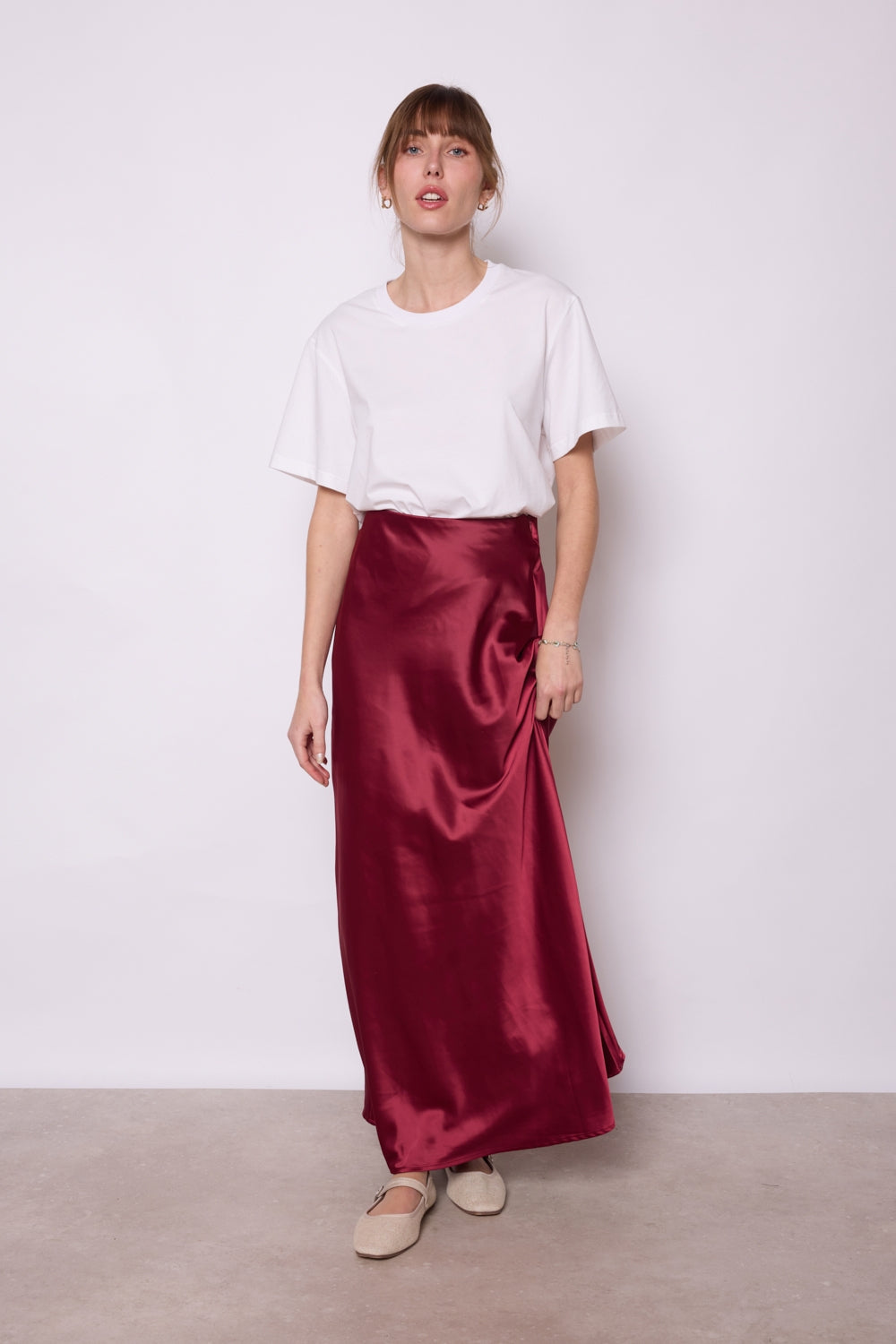 Jupe longue en satin avec une coupe fluide et élégante. Taille ajustée pour un maintien parfait et une silhouette flatteuse. Finition brillante pour une allure sophistiquée. Parfaite pour un look chic