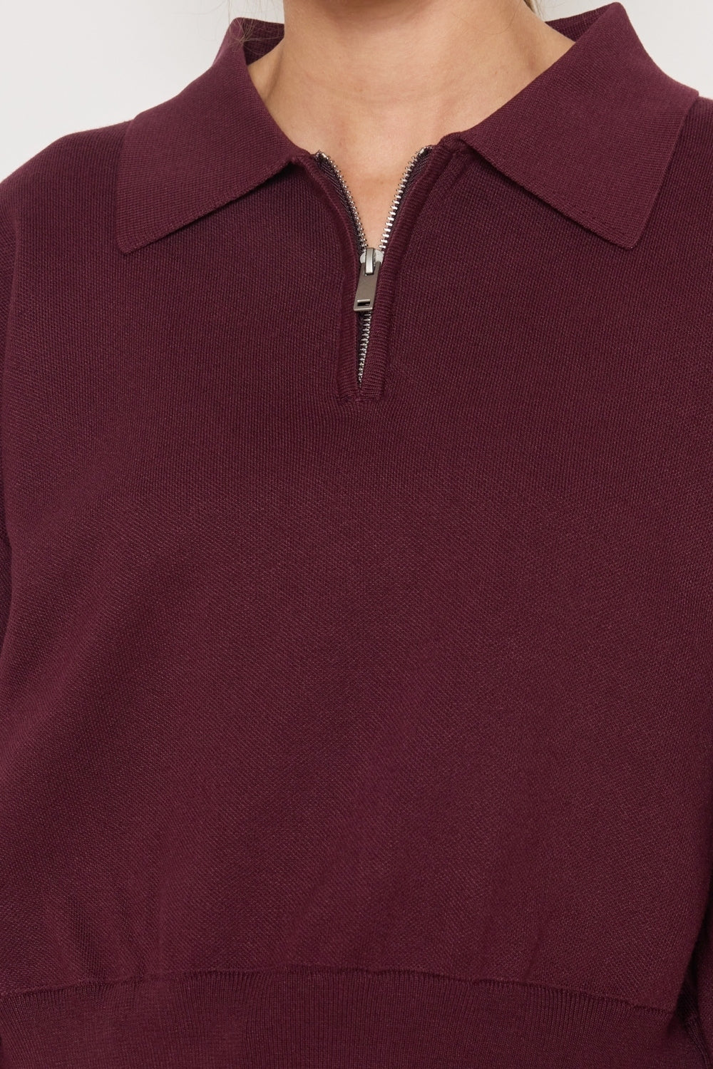 Sweat court avec col chemise et fermeture éclair sur le devant. Coupe ample avec bas resserré et manches longues bouffantes. Épaules tombantes pour un porté décontracté. Finition en bord-côte aux poignets et à la taille.