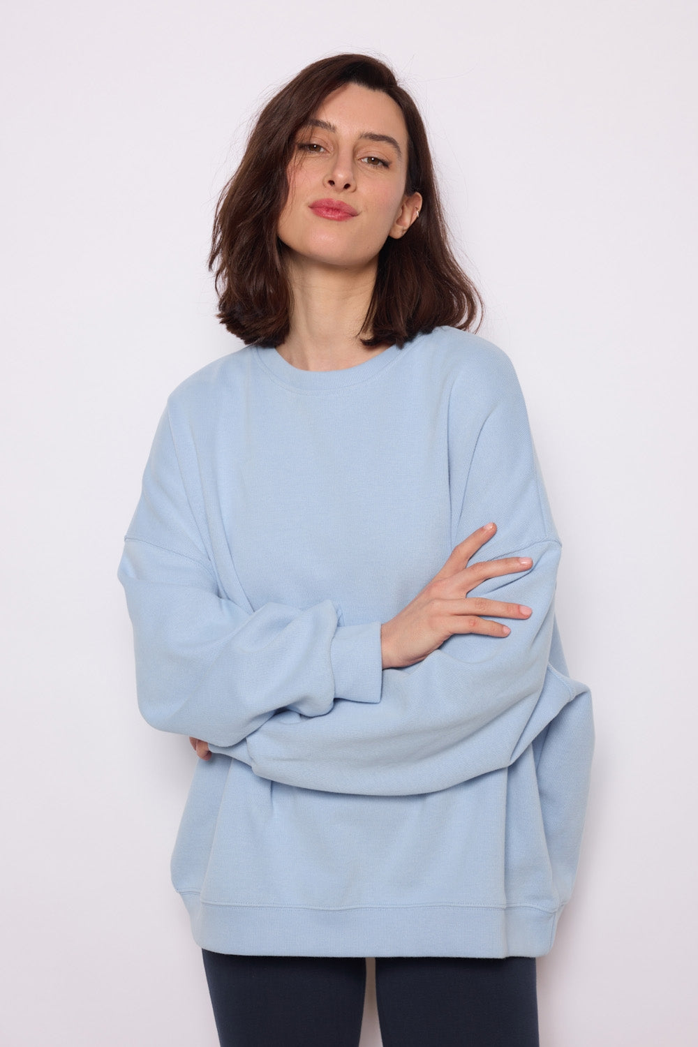 Sweat à coupe ample avec encolure ronde et finitions ton sur ton. Manches longues avec épaules tombantes. Bords côtelés sur les poignets et le bas. Structure épurée sans motifs ni imprimés.