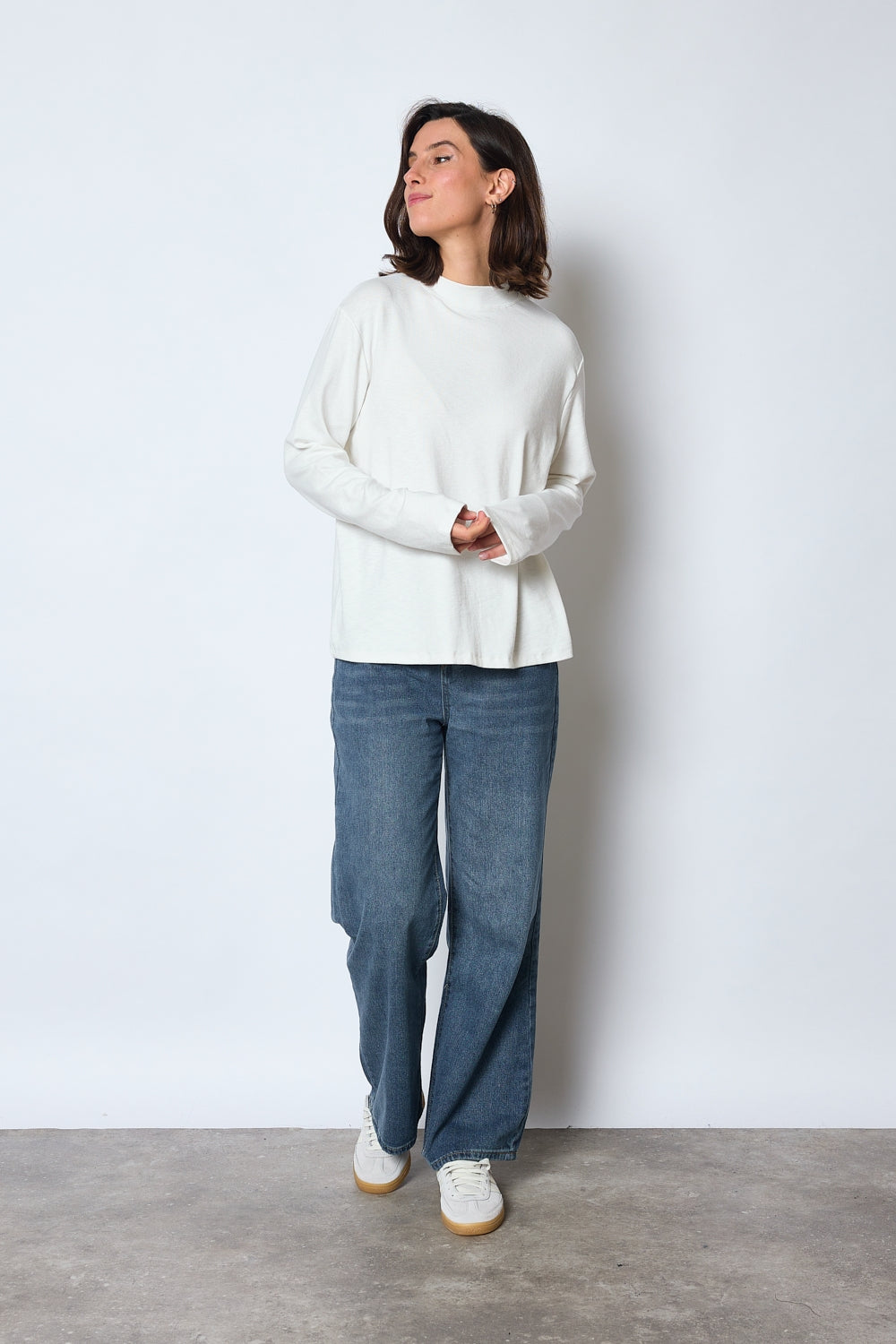 T-shirt à coupe droite avec col rond et manches longues. Matière légère et texture lisse pour un confort optimal. Finitions discrètes aux poignets et à l’ourlet pour un style épuré.