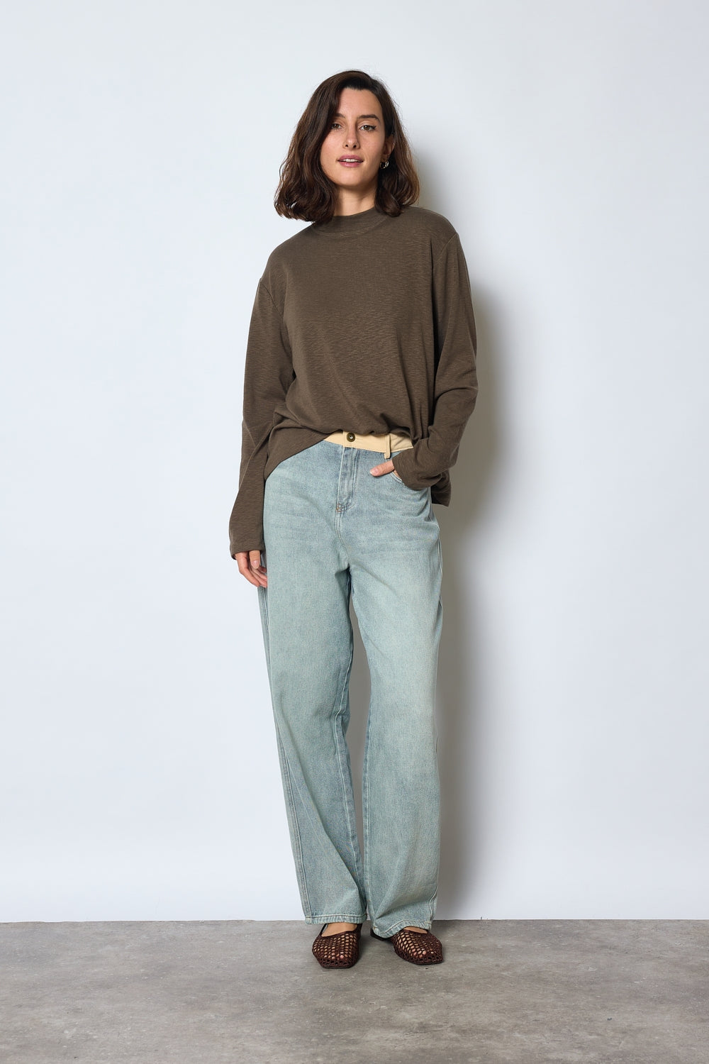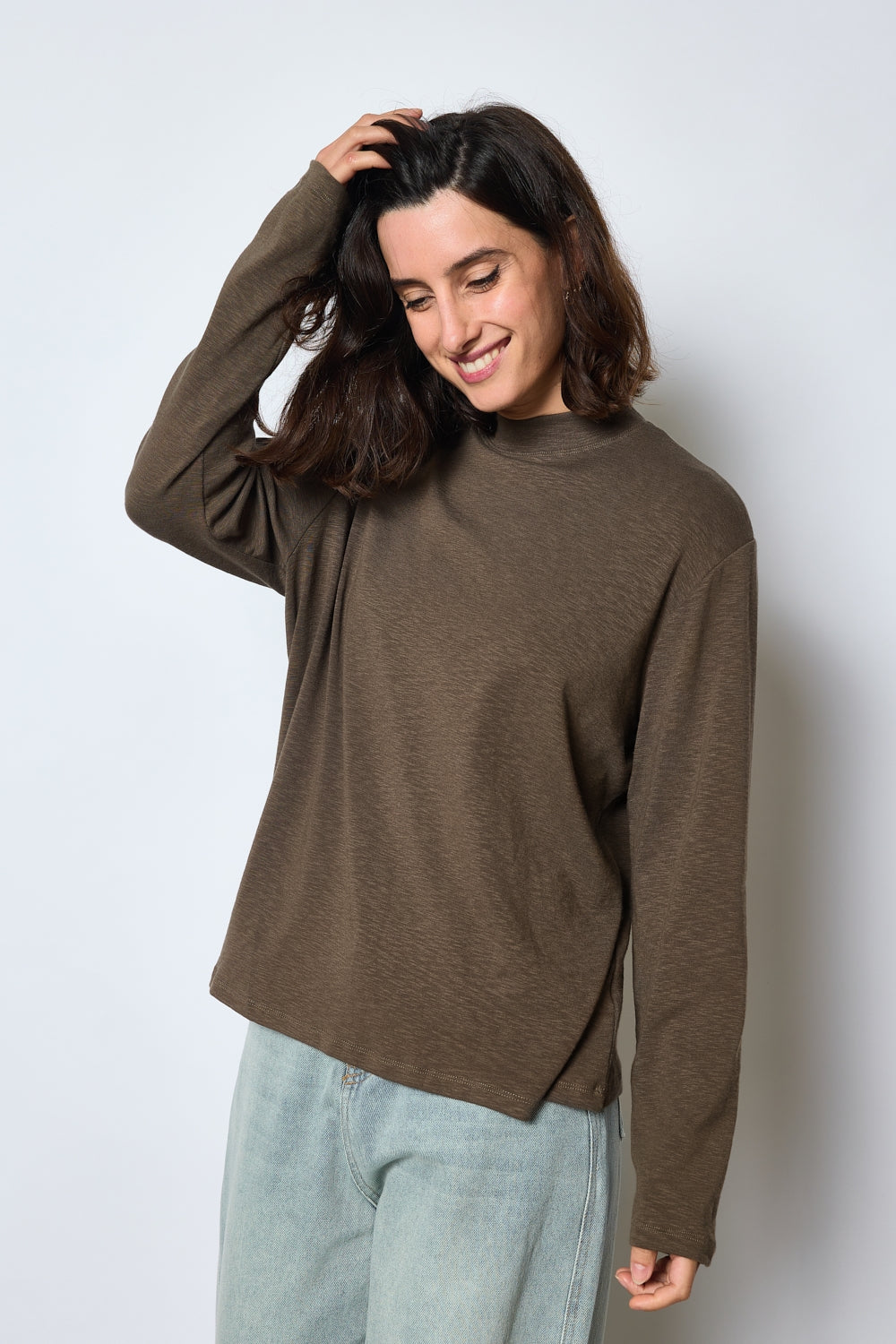 T-shirt à coupe droite avec col rond et manches longues. Matière légère et texture lisse pour un confort optimal. Finitions discrètes aux poignets et à l’ourlet pour un style épuré.