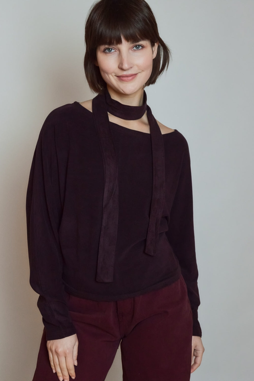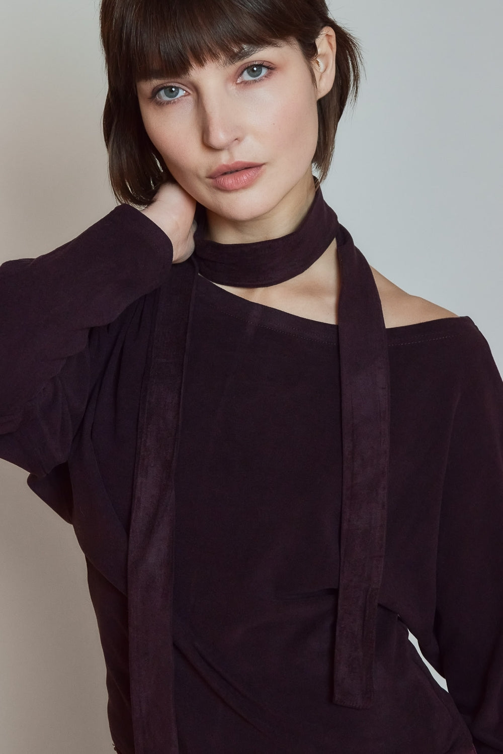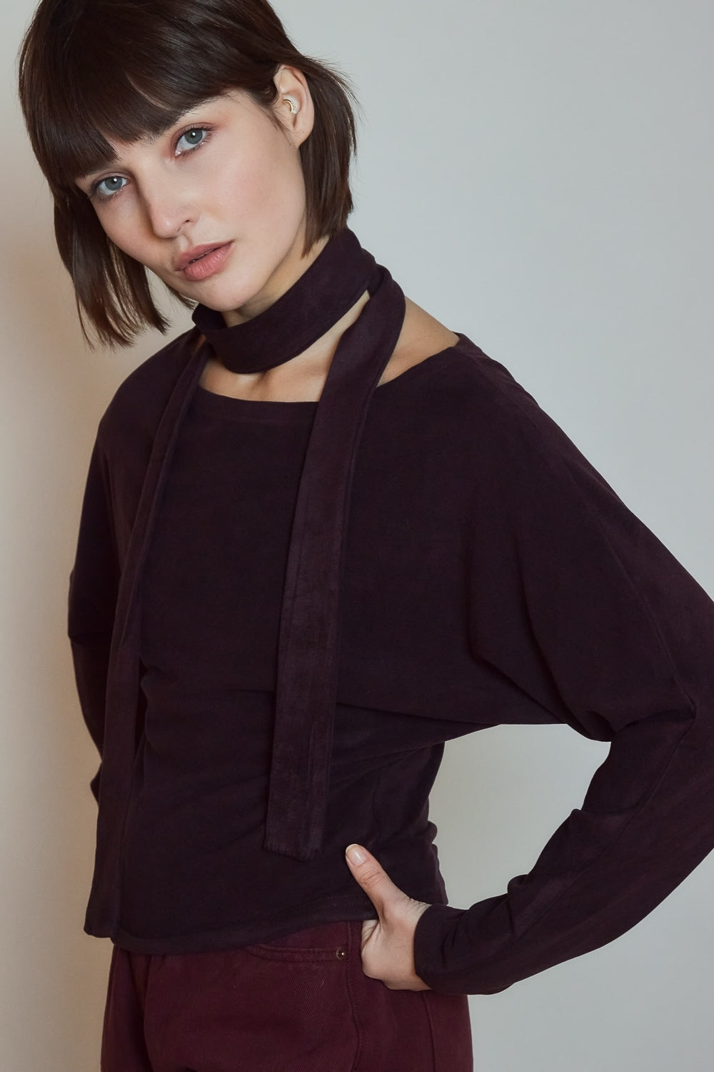 Top fluide à manches longues, dessiné dans une matière douce au tombé souple. L’encolure dégagée se prolonge par un détail drapé qui structure la ligne. Une pièce contemporaine, pensée pour un porté simple et maîtrisé.